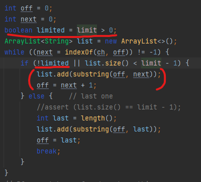 요 메서드에 두 번째 파라미터 값에 -1을 주면 빈 문자열도 반환 요소에 포함돼서 반환 됩니다.