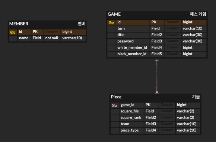 체스 미션의 기물 이동 명령은 이동할 기물의 위치와 목적지의 위치를 입력받고 해당 게임의 모든 체스기물을 불러와서 체스 보드를 만든 후에 이동할 수 있는지 도메인 검증을 거친 후 Piece테이블에 game_id와 위치로 조건절 걸고 update 쿼리를 사용하는 방식으로 구현되었다.